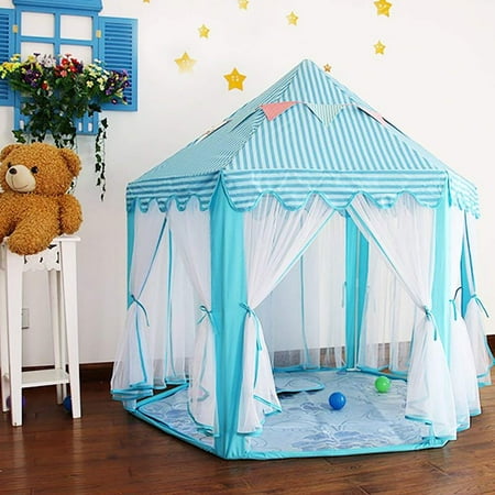 Kids Indoor Outdoor Princess Tent Fairy Castle Perfect Hexagon Large Playhouse Toys For Girls Boys Children Toddlers Gift Present Blue